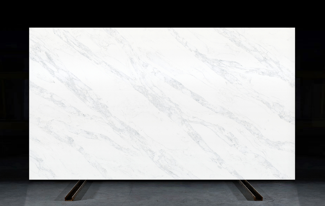 Ultra-white base color with grey vain of calacatta.